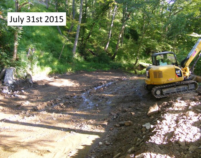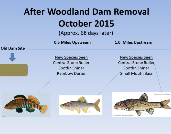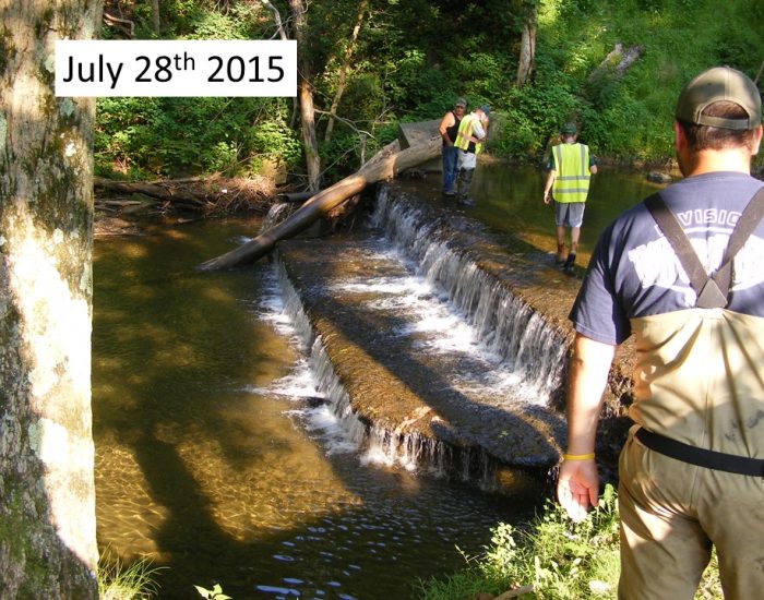 After thorough evaluation and a public review period, the PADEP Division of Dam Safety approved the restoration plan to breach and remove the Woodland dam for the purpose of eliminating a threat to public safety and restoring the stream to a free flowing condition. With grant funding from American Rivers and the Western Pennsylvania Conservancy, the dam was successfully removed without incident on July 28 – 31.