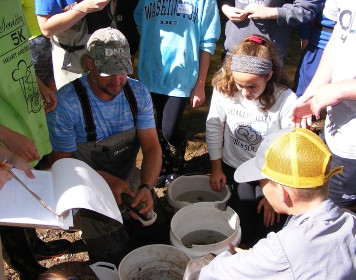 Since 2009, the QV Creekers, an after-school internship group of Quaker Valley High School students sponsored by the Little Sewickley Creek Watershed Association (LSCWA), have been actively monitoring Little Sewickley Creek. They have carried out reptile and amphibian surveys and fish species population counts that were used in evaluating the impact of the dam. The Creekers are excited to continue to work with the Western Pennsylvania Conservancy to assess the effect of the dam removal on the stream. The LSCWA hopes this type of hands-on experience will strengthen their interest in being stewards of the Little Sewickley Creek watershed.